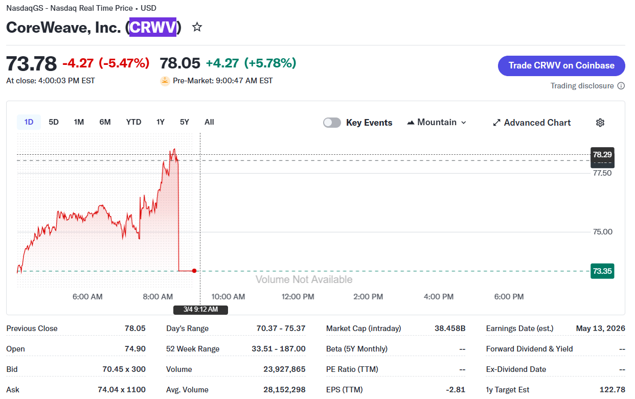 CoreWeave (CRWV) saw its shares surge nearly 6% in premarket trading on Wednesday after announcing a multi-year agreement to support inference operations for Perplexity, an emerging AI-driven search engine backed by Jeff Bezos and Nvidia.