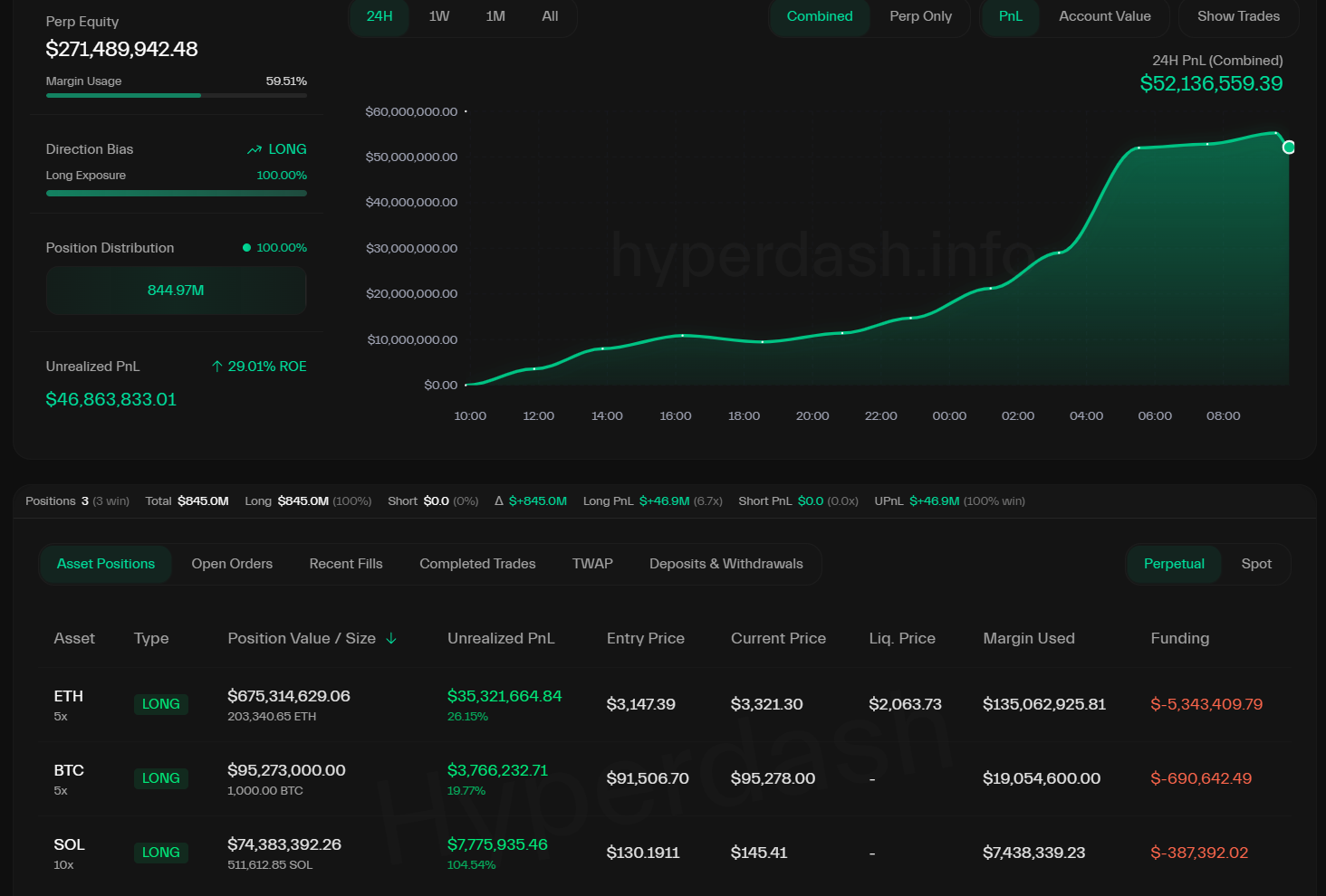 The pseudonymous trader known as ‘BitcoinOG,’ also called ‘1011short,’ who rose to prominence after a massive win during the October 2025 market crash, recorded nearly $50 million in unrealized profits within 24 hours from long bets on Bitcoin, Ethereum, and Solana.