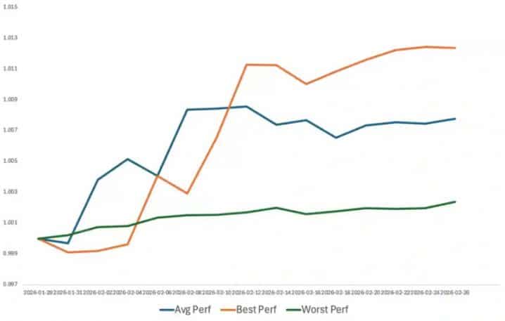 To ensure consistency in performance comparisons, fund assets were aligned as of Jan. 27, 2026. Net asset values were calculated using the time-weighted return methodology, a standard approach that measures investment performance independently of the timing of investor cash flows. Results were benchmarked against funding arbitrage performance.