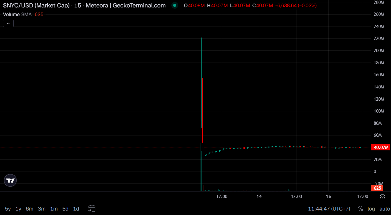 The NYC Token’s market capitalization topped $220 million at launch but quickly fell more than 80% to roughly $40 million, per GeckoTerminal. The spokesperson said the sharp swings reflect volatility common among newly launched digital assets.