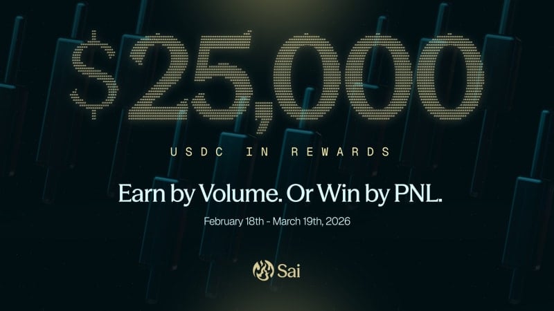 Sai also unveiled Let’s Go Saicho, a one-month onchain trading competition running February 18 through March 19, 2026, with $25,000 in total prizes. The campaign is structured in two phases designed to reward both performance and participation: a PNL competition for profitable traders, followed by a first-come, first-serve “Be Early” phase for traders who engage early and hit a minimum volume threshold.