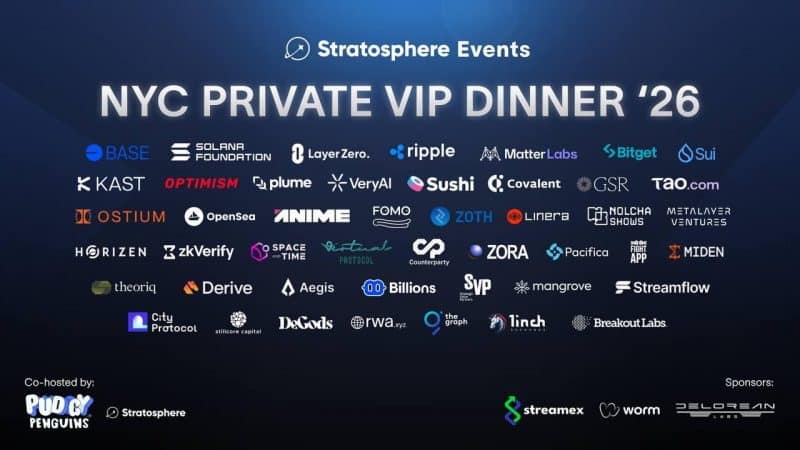 Web3 ecosystem growth firm Stratosphere and Pudgy Penguins, one of the most recognized brands in the digital asset space, have officially partnered to co-host The Founders Table, a recurring private dinner series that will bring together founders, C-level executives, and institutional operators at every major Web3 conference throughout 2026.